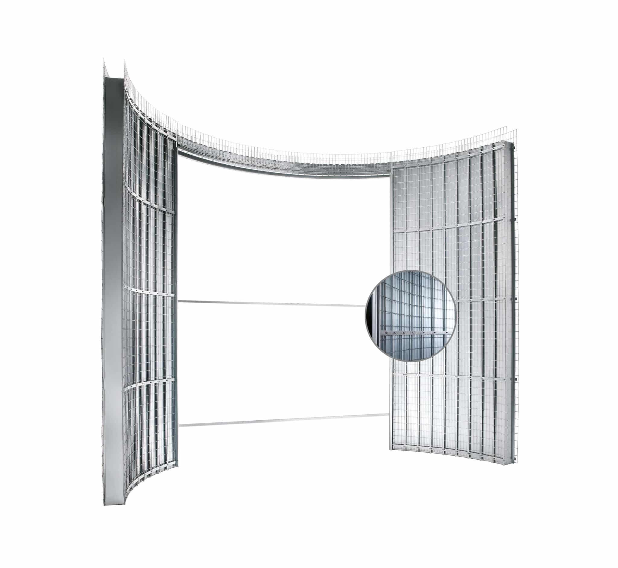 Avec Circular, il est possible d'insérer un châssis pour porte coulissante à l'intérieur d'une surface courbe.