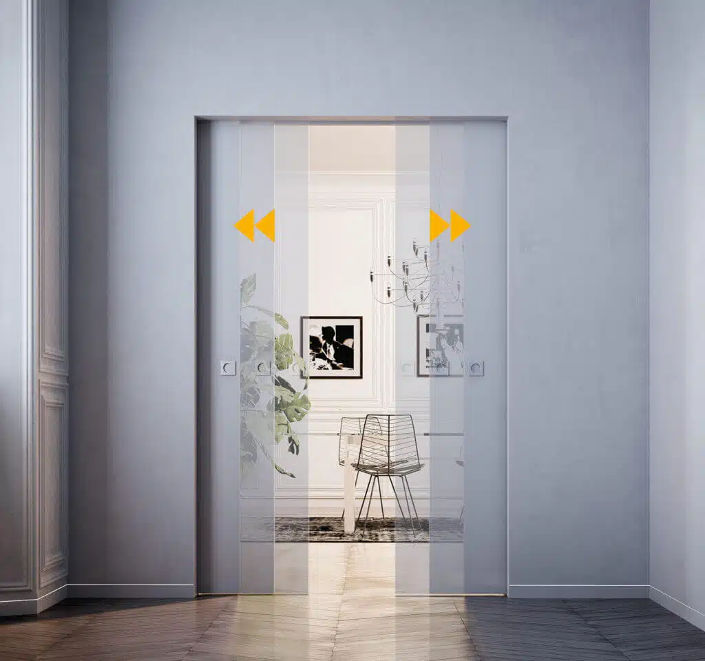Installation de l'accessoire automatisme pour porte coulissante double.