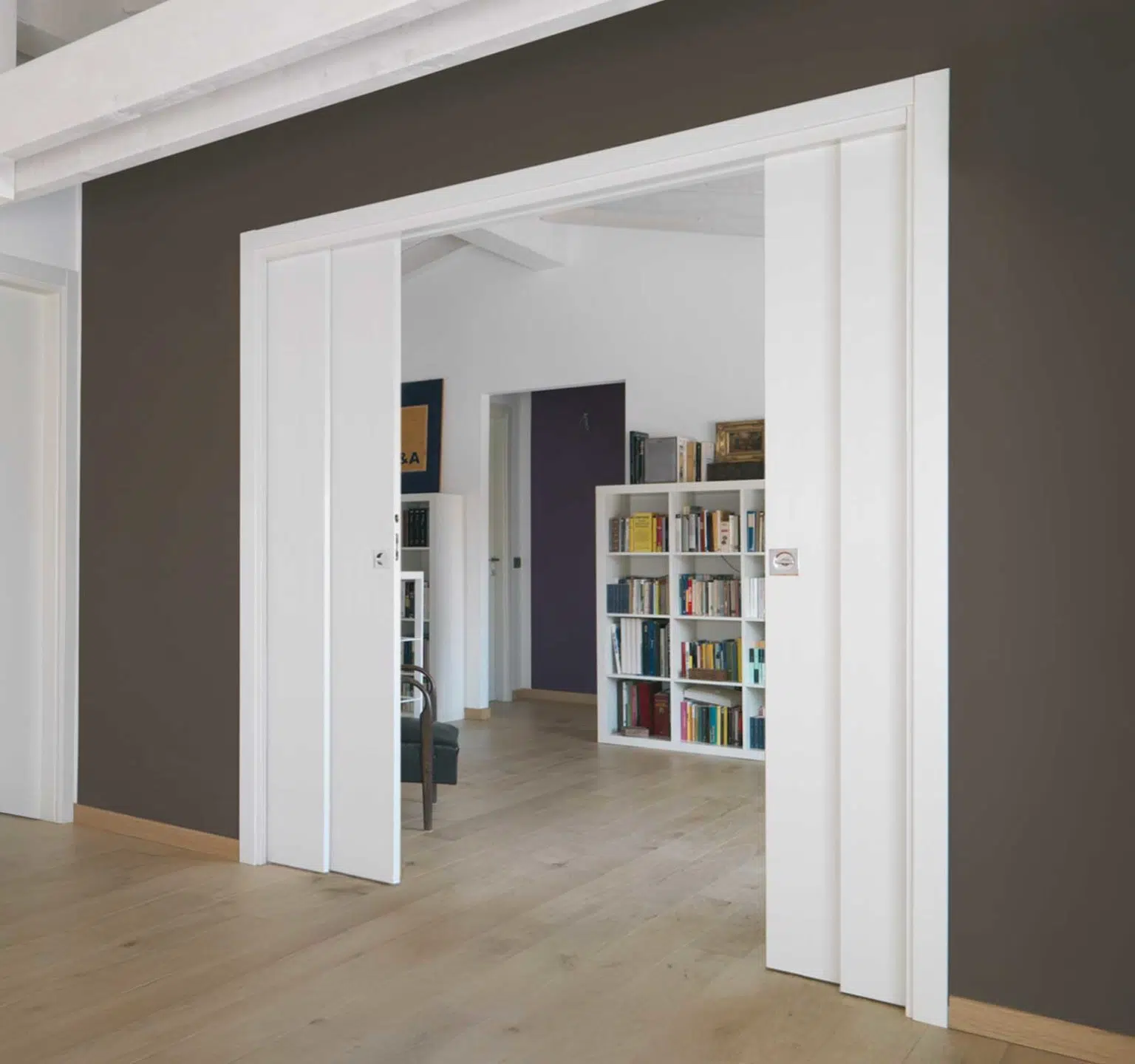Systèmes permettant de raccorder deux châssis simples pour créer une porte à deux vantaux.