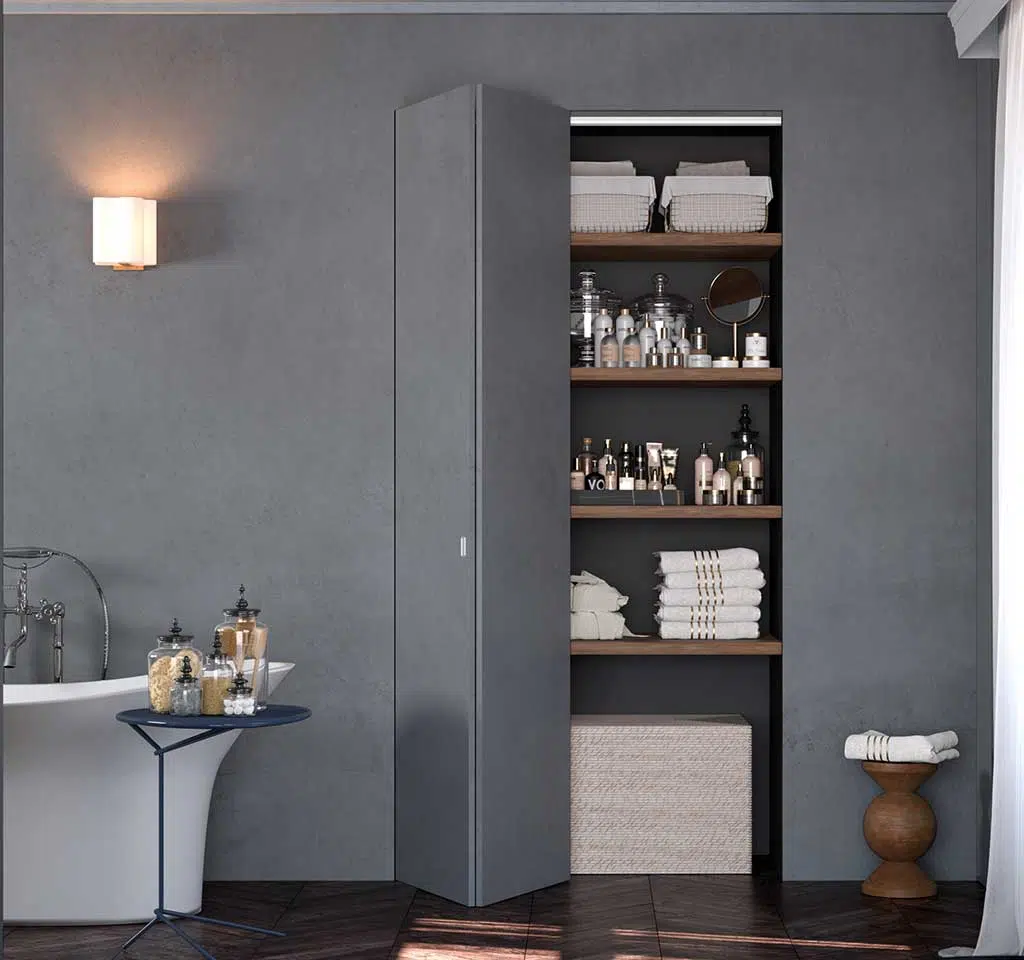 Découvrez le bloc-porte de placard invisible Syntesis Areo pour dissimuler tous vos rangements du quotidien avec style.
